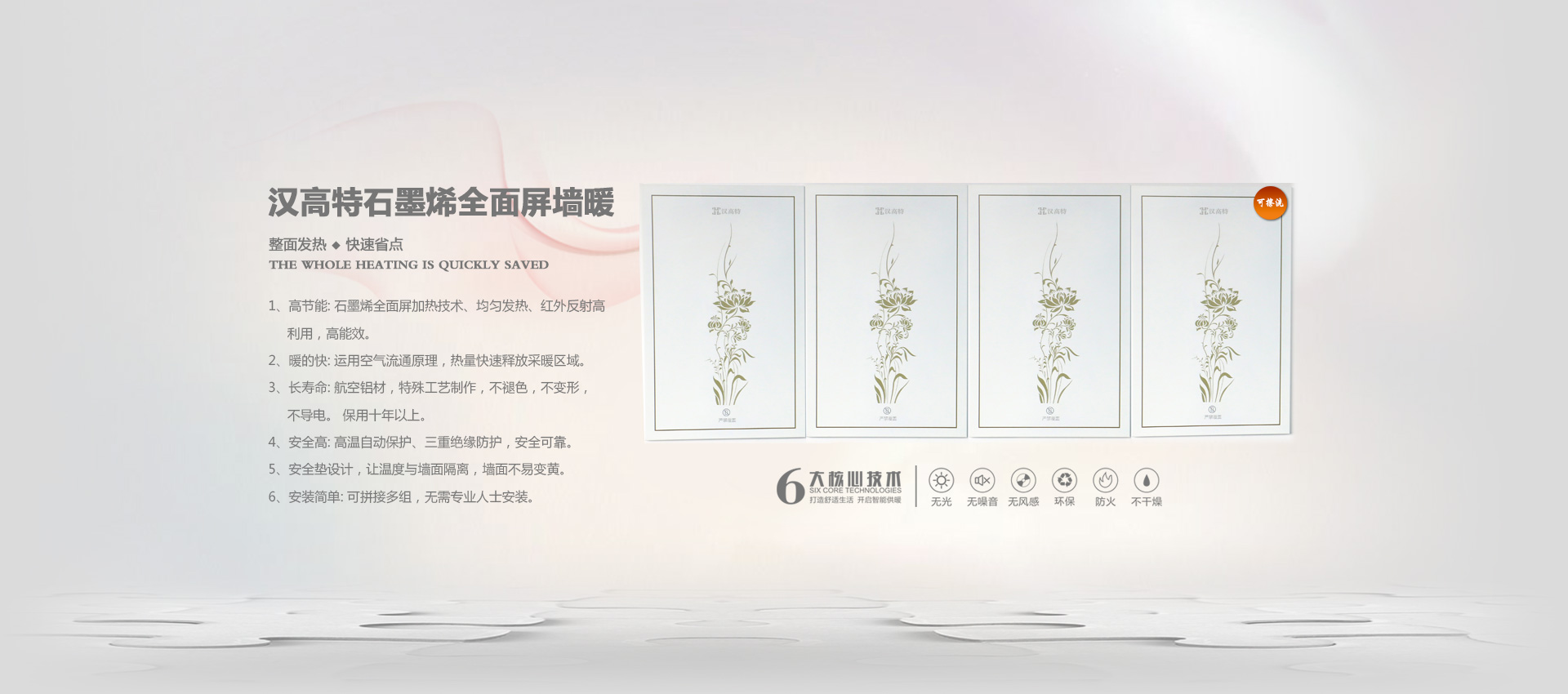 漢高特自主研發(fā)的新型石墨烯電地暖、石墨烯電采暖、電熱膜電地暖、碳纖維電暖、碳晶墻暖畫、電地暖廠家加盟、電熱膜工廠,采用新設(shè)計、新材料在行業(yè)內(nèi)首創(chuàng)了耐強(qiáng)酸、耐強(qiáng)堿、防火阻燃、防水防潮等特點。產(chǎn)品暢銷江蘇、四川、甘肅、山西、河北、河南、內(nèi)蒙、新疆等地。